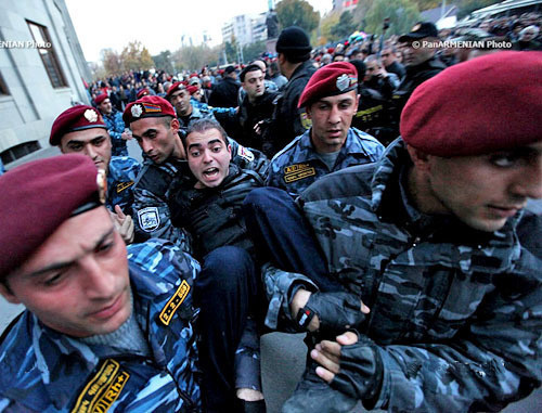 The "Caucasian Knot" has reported that during the protest action "Million Mask March", held November 5, 2013, in Yerevan, 37 people were detained. The marchers came into confrontation with the police. In the course of the riots, eight policemen and a teenager suffered; and 20 protesters were arrested. They were charged with resisting the authorities with use of violence.