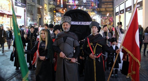 A many-thousand march of Circassian activists in Istanbul is marching along Istiklal Street to the Russian General Consulate, where they plan to hold a rally in memory of the 152nd anniversary of the end of the Caucasian War.