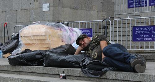Besides, it is raining today in Tbilisi, but the authorities do not allow setting up tents.