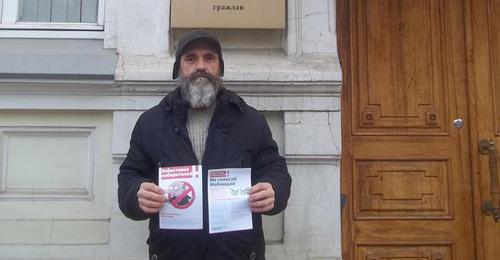 Today, Mikhail Anisenko, Alexei Tyurin, and Andrei Yegorov have gathered in the centre of Astrakhan to hand out for passers-by the leaflets with the advertisement of the action "Voters' Strike". However, two of them were soon detained by policemen.