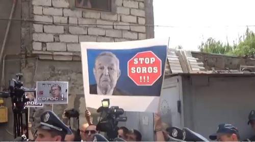 The protestors held posters reading "Stop Soros!", "Beware, Soros!" and photos of George Soros, Larisa Minasyan, the head of the Armenian branch of the Foundation, and of some officials, who, in the opinion of activists, always received direct funding from the Soros Foundation.