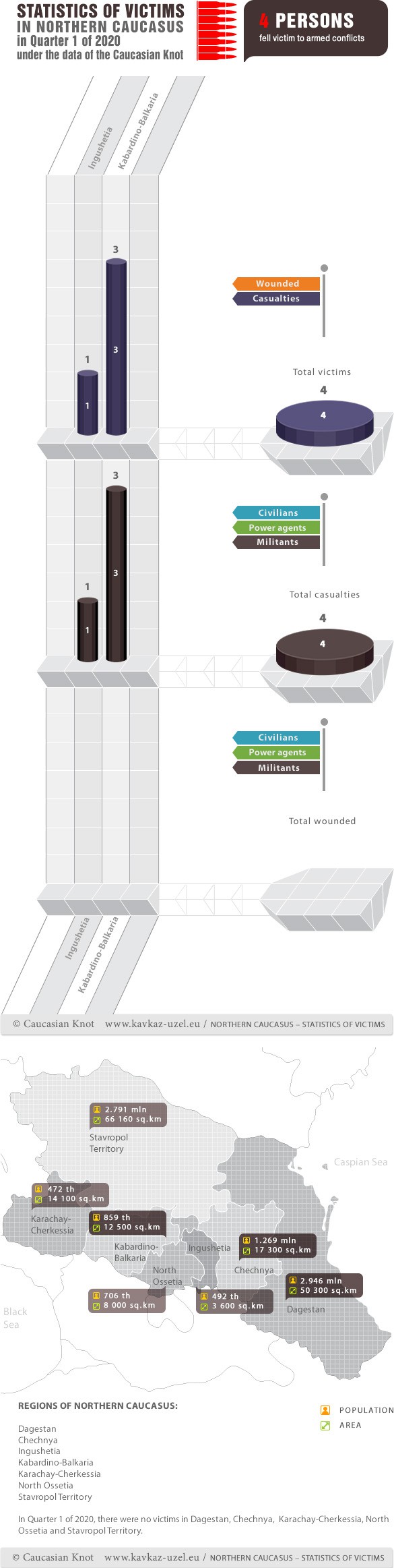 Infographics. Statistics of victims in Northern Caucasus in Quarter 1 of 2020 under the data of the Caucasian Knot