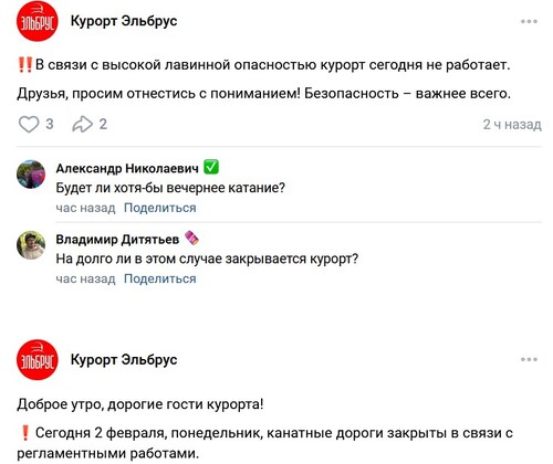 As of 11:06 Moscow time, commenting on the resort's Telegram channel has been disabled. On the resort's VKontakte page, where all the announcements are duplicated, comments are posted only under the post stating that the resort is closed on February 3rd.